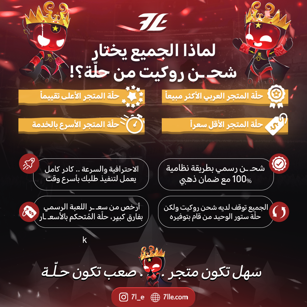 ◎ ولأن حلّة يحكُم عالم الألعاب وفرنالك شحن روكيت حلّة بأقل سـ ـعر بتاريخ اللعبة وفارق كبير عن السعر الأصلي 💸.